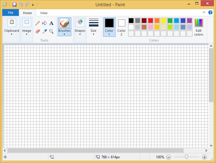 If we log on to one of our test desktops and launch Microsoft Paint, we can see that the view is configured to show gridlines, as below. The Paint executable is being Personalized, so the setting persists from endpoint to endpoint, as we'd expect.
