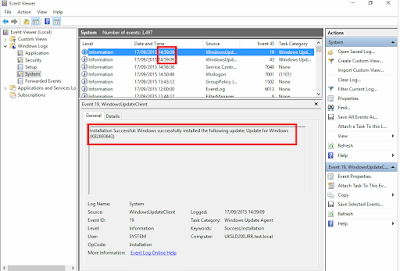Next stop is obviously the event logs....but these are also utterly inconclusive. They simply report that the update started being installed and finished successfully - but the timestamps indicate it was almost instantaneous, which leads me to believe it didn't install successfully at all.
